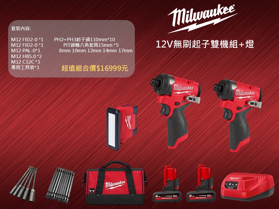 類別:電動工具系列 / Milwaukee美沃奇專業汽機車修護套裝